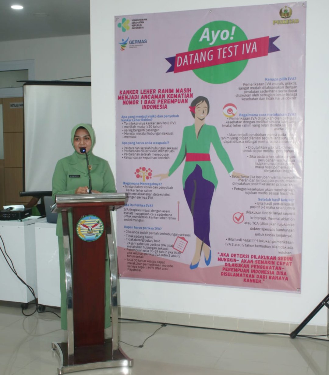 PANGKALPINANG, MB1 II Anggota Persit KCK Koorcabrem 045 PD II/Swj mengikuti penyuluhan sosialisasi deteksi dini kanker leher rahim (Serviks) dan kanker payudara dalam rangka HUT Kesad Ke-79 Tahun 2024...
