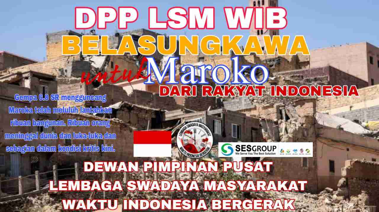 JAKARTA – MB1 || (DPP LSM WIB) Dewan Pimpinan Pusat Lembaga Swadaya Masyarakat Waktu Indonesia Bergerak Belasungkawa untuk maroko, Inna lillahi wa inna ilaihi raji’un. Kondisi duka menyelimuti s...